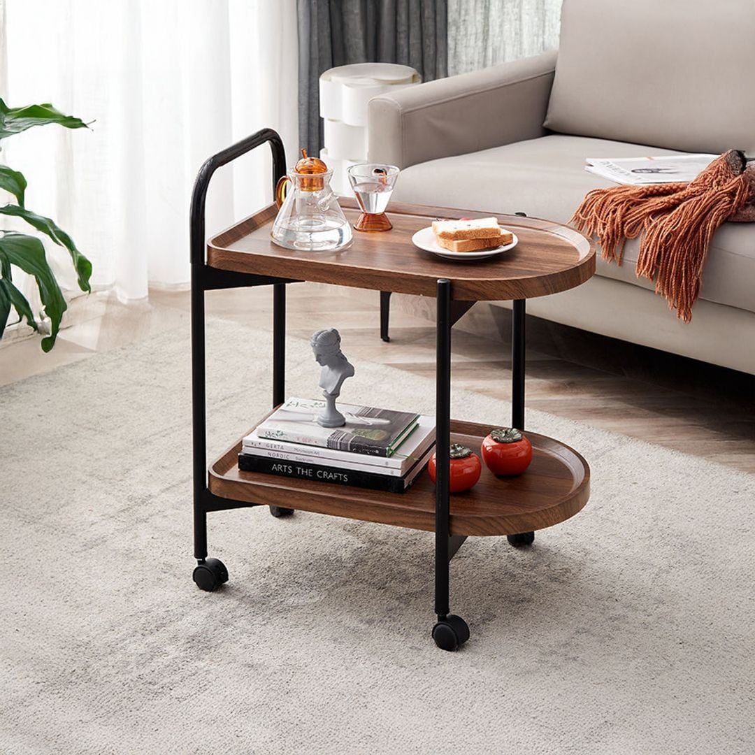 التصميم: عربة ضيافة أنيقة بتصميم عصري، تجمع بين الإطار المعدني باللون الأسود والأرفف الخشبية ذات اللون البني و الابيض. الخامة: الإطار مصنوع من المعدن المتين المطلي باللون الأسود، مع أرفف خشبية مقاومة للخدوش وسهلة التنظيف. الهيكل: تحتوي على مستويين للاستخدام: المستوى العلوي: مخصص لوضع أدوات التقديم مثل الأكواب والأطباق. المستوى السفلي: يستخدم لتخزين الكتب أو الفاكهة أو أدوات إضافية. المرونة: مزودة بعجلات متحركة تتيح سهولة نقلها في أرجاء المنزل. المقابض: مزودة بمقبض معدني علوي لتسهيل عملية الدفع والتحكم. الاستخدام: مثالية للاستخدام في غرف المعيشة أو المطابخ أو حتى كزينة عملية في المكاتب.