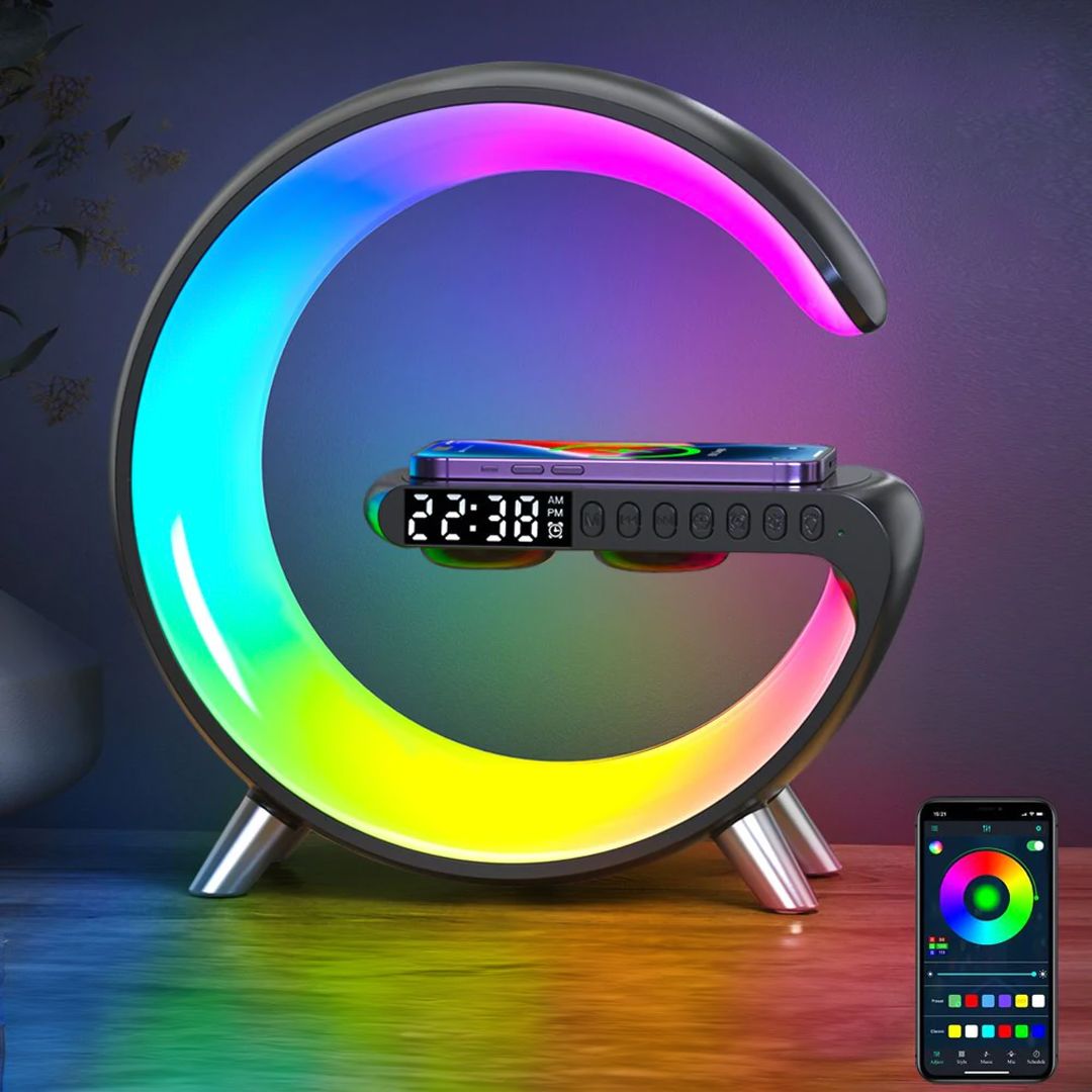 مكبر صوت و بلوتوث ذكي يدعم شاحن اللاسلكي مع ساعة منبه وضوء