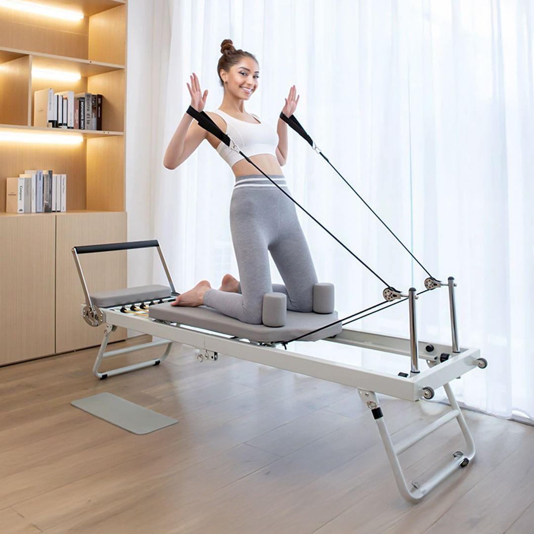 تصميم متعدد الوظائف: جهاز مصمم خصيصًا لتمارين البيلاتس الشاملة التي تستهدف تحسين اللياقة البدنية والمرونة. مثالي لتمارين القوة، تحسين التوازن، وتقوية العضلات الأساسية. مناسب للاستخدام المنزلي: يتميز بتصميم قابل للطي، مما يجعله سهل التخزين في المنزل بعد الاستخدام. هيكل متين وآمن: مصنوع من مواد عالية الجودة تضمن الثبات والمتانة أثناء التمارين. مزود بدعائم وسادات مريحة لدعم الجسم وتقليل الضغط على المفاصل. حبال مرنة قابلة للتعديل: يحتوي على نظام حبال مرنة يتيح التحكم في مستوى المقاومة، مما يناسب المبتدئين والمحترفين. تحسين الصحة العامة: يساعد على حرق الدهون، تقليل التوتر، وتحسين الدورة الدموية ووظائف الجهاز التنفسي.