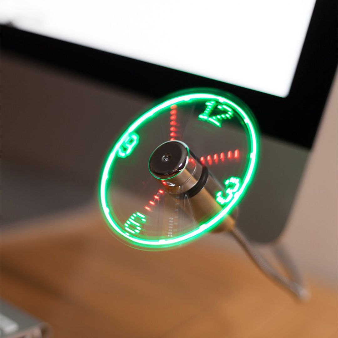 مروحة صغيرة تُظهر الساعه بتقنية الهولوجرام يجب ان تبقى متصلة بمنفذ كهرباء او بباور بانك لا تحتاج الى أي تطبيق ، كل ما عليك فعله هو شبكها بالكهرباء فقط مصنوعة من مواد عالية الودة ومتينة