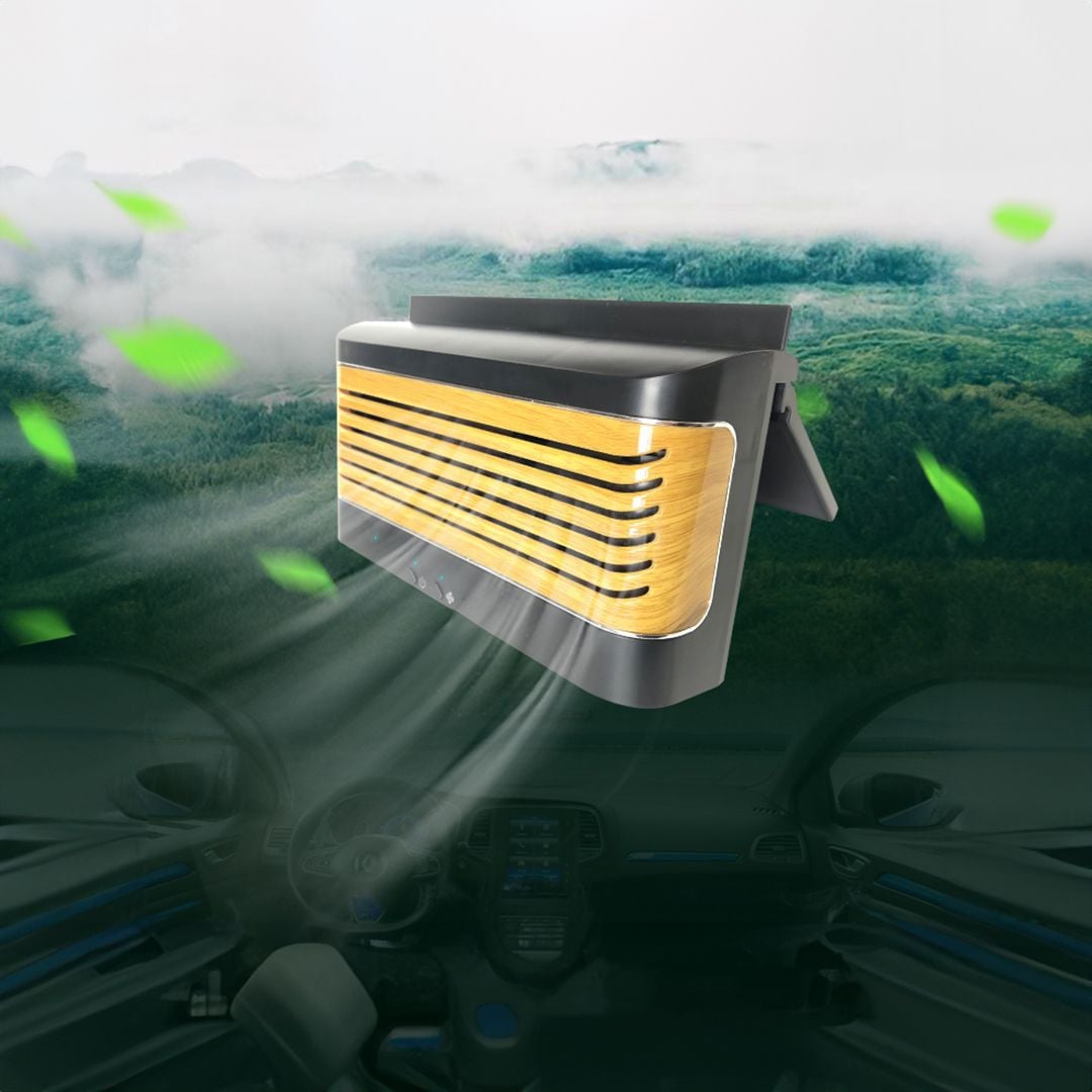 مروحة تعمل بالطاقة الشمسية او من خلال الشحن عبر USB، كما تعمل على تنقية وتبريد الهواء نوعا ما داخل حجرة السيارة