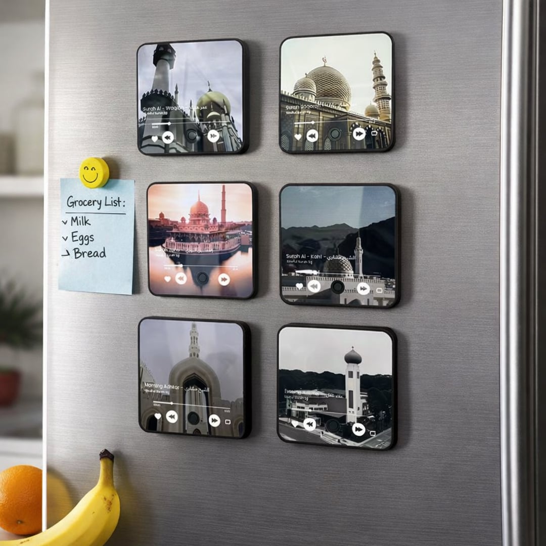 بفضل ظهره المغناطيسي القوي، يمكنك تثبيته بثقة على الثلاجة، اللوحات المعدنية، أو أي سطح معدني بسهولة تامة. لا يحتاج إلى مكان خاص، بل يرافقك في المطبخ، المكتب، أو أي زاوية تحب أن تمتلئ بالذكر والطمأنينة. عملية ذكية تمنحه مرونة استخدام لا مثيل لها.