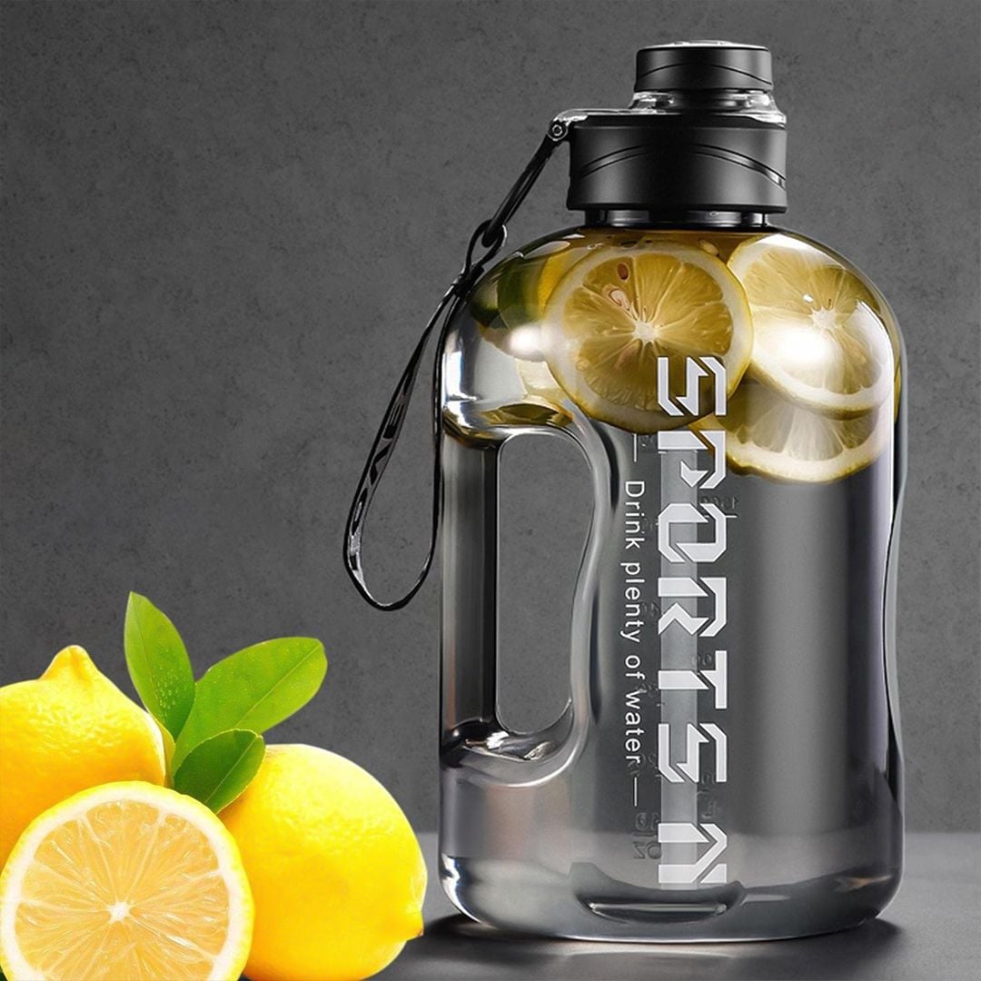 زجاجة مياه بسعة كبيرة، مصنوعة من مادة بي اي تي جي القوية والمتينة و البلاستيك الخالِ من البيسفينول أ بنسبة 100% خالية من الروائح وصحية لاستهلاك الماء اليومي تصميم الغطاء قلاب، مقاوم للغبار والتسرب علامات وقت تحفيزية لقياس استهلاكك اليومي من الماء، وهو مثالي لضمان شرب كمية كافية من الماء طوال اليوم