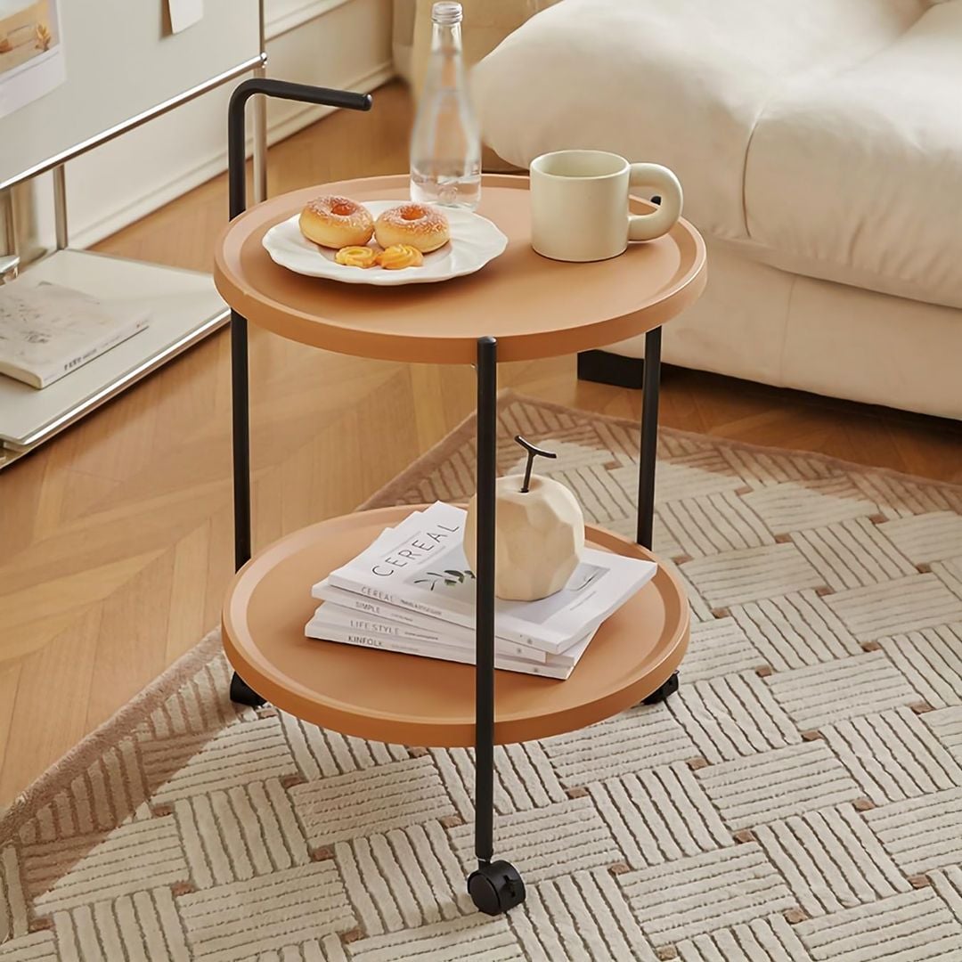أضف لمسة عملية وعصرية إلى منزلك مع طاولة تقديم ذات تصميم دائري أنيق، بطبقتين وسطح مرتفع يمنع الانزلاق، وسهولة في الحركة بفضل العجلات المزوّدة بنظام قفل.