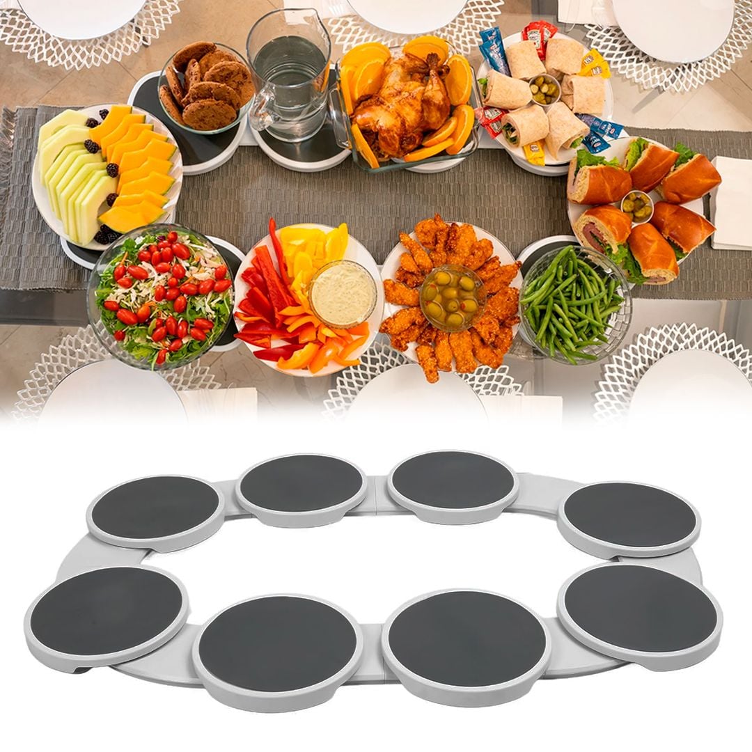 تصميم مبتكر وعملي: تتميز أطباق تقديم الطعام الدوّارة بآلية دوران سلسة تسهل الوصول إلى الطعام من جميع الجوانب، مع تصميم أنيق يضفي لمسة جمالية على طاولة الطعام. مناسبة للتجمعات الكبيرة: تتيح أطباق التقديم الدوّارة توزيع الطعام بسهولة بين الضيوف أو أفراد العائلة دون الحاجة لتمرير الأطباق، مما يجعلها مثالية للتجمعات العائلية والمناسبات والحفلات تصميم يوفر الراحة: تسهل أطباق التقديم الدوّارة الوصول إلى الطعام دون الحاجة للوقوف أو الإزعاج أثناء تناول الوجبات سعة كبيرة وتنظيم مثالي: توفر 8 أطباق تقديم دوّارة مساحة واسعة لتقديم مجموعة متنوعة من الأطباق مثل المقبلات، الحلويات، أو المشروبات، مما يساعد على تنظيم الطاولة بشكل عملي وأنيق. آمنة وسهلة الاستخدام: مزودة بقاعدة مستقرة ولاصقات مضادة للانزلاق تضمن ثبات الأطباق أثناء الدوران، كما أنها سهلة التركيب والاستخدام