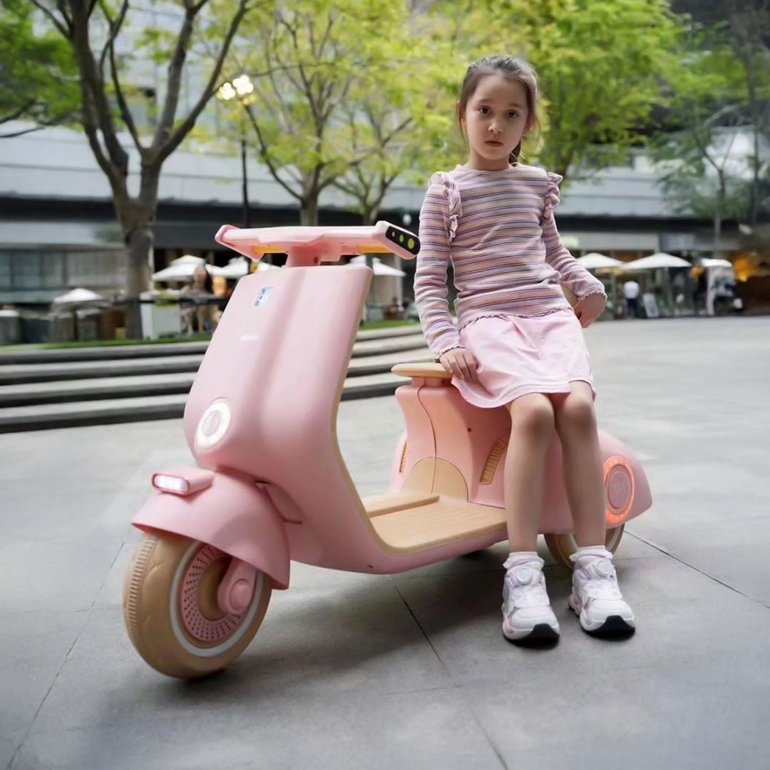 تصميم أنيق وعصري: يتميز بتصميم جذاب يشبه السكوتر الكلاسيكي مع ألوان هادئة تناسب الأطفال. محرك كهربائي آمن: مزود بمحرك كهربائي يعمل بسلاسة وبسرعات منخفضة لضمان سلامة الأطفال أثناء الاستخدام. مقعد مريح: يحتوي على مقعد مبطن ومريح يوفر تجربة ركوب ممتعة للأطفال. عجلات قوية ومستقرة: مصممة من مواد متينة لضمان التوازن والثبات أثناء الحركة. بطارية قابلة لإعادة الشحن: سهلة الاستخدام وتوفر وقت تشغيل طويل للاستمتاع باللعب حيث يتم شحنها لمدة بين 6 - 7 ساعات حتى تعمل لمدة 70 دقيقة. إضاءة أمامية وخلفية: مزودة بأضواء LED توفر رؤية واضحة وتضيف لمسة من المرح. سهولة الاستخدام: يمكن للأطفال تشغيله والتحكم فيه بسهولة بفضل التصميم البسيط. مواد عالية الجودة: مصنوعة من البلاستيك القوي المقاوم للصدمات لضمان التحمل والأمان. مناسبة لجميع الاماكن: مثالية للعب في الحدائق أو الساحات المنزلية.
