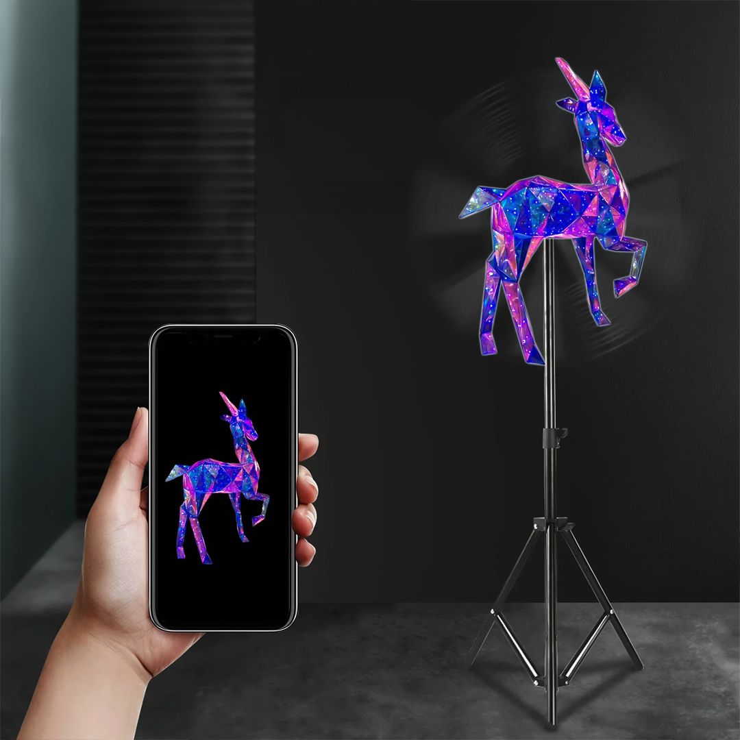 جهاز عرض هولوجرام 52 سم، بتصميم 4 شفرات مروحة، بدقة 2000 × 552 بكسل