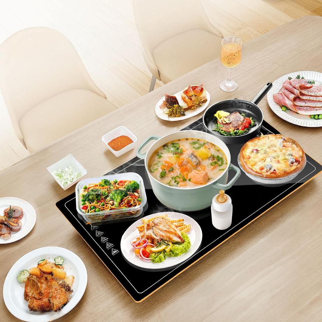 لوح تدفئة الطعام الكهربائي بتصميم أنيق ومواد آمنة، يعمل من خلال وصله بالكهرباء يضمن لك تجربة مريحة وسهلة لتدفئة الطعام في جميع المناسبات.