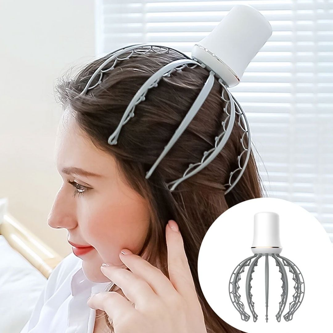 جهاز تدليك فروة الرأس عن طريق الاهتزاز، يعمل من خلال الشحن، يتكون من 12 مخلب لضمان تدليك الرأس بالكامل