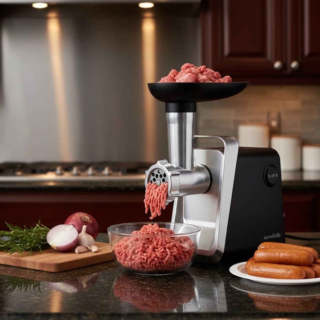 أطلِق قوة مطبخك مع مفرمة اللحم من LumaBella بقدرة 2800 واط — أداء قوي، تصميم أنيق من الستانلس ستيل، ونتائج مثالية تمنحك لحماً طازجًا جاهزًا لأشهى وصفاتك بكل سهولة.