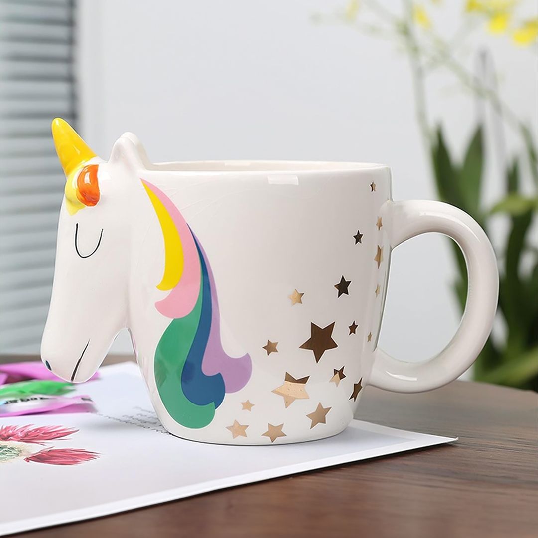 مج سيراميك بتصميم اليونيكورن، مطلية يدويًا بشكل لطيف ومميز