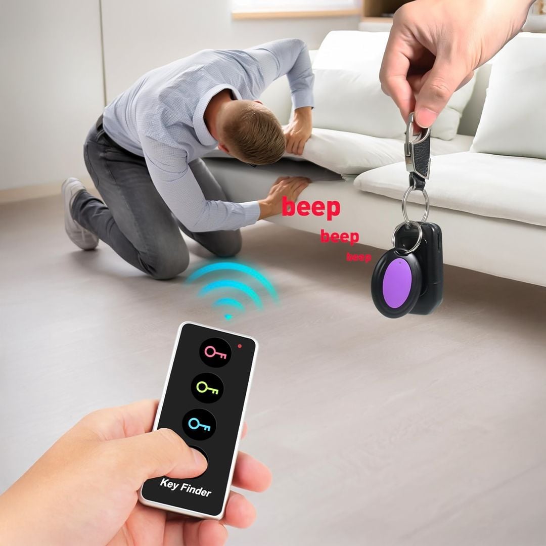 مجموعة مكونة من أربعة أجهزة تتبع ملونة (أحمر، أزرق، أخضر، بنفسجي)، جهاز تحكم لاسلكي بأزرار مطابقة للألوان، قاعدة لتثبيت جهاز التحكم، بطاريات طويلة الأمد، وملصقات وحلقات لتثبيت أجهزة التتبع على المفاتيح أو غيرها من الأغراض طريقة الاستخدام: يتم تثبيت جهاز التتبع على الغرض المراد تتبعه مثل المفاتيح أو الحقائب، وعند فقدانه يتم الضغط على الزر المطابق للونه في جهاز التحكم، ليصدر صوتًا أو إشارة تساعد في تحديد موقعه الاستخدامات العملية: مناسب لتعقب المفاتيح، المحافظ، الحقائب، الأدوات الشخصية، وحتى الحيوانات الأليفة الصغيرة، مما يجعله مثاليًا للحفاظ على أغراضك آمنة وسهلة الوصول. تصميم محمول: يتميز المنتج بتصميم أنيق وخفيف الوزن يتيح سهولة حمله أو تثبيته على مجموعة متنوعة من الأغراض، دون أن يشغل مساحة كبيرة أو يضيف وزنًا. نطاق تغطية واسع: يغطي الجهاز نطاقًا لاسلكيًا يصل إلى 30-50 مترًا، مما يتيح العثور على أغراضك حتى في الأماكن الواسعة أو المزدحمة. بطاريات طويلة الأمد: تأتي أجهزة التتبع مزودة ببطاريات تدوم لفترة طويلة، مع إمكانية استبدالها بسهولة عند الحاجة لتوفير تجربة مريحة على المدى الطويل