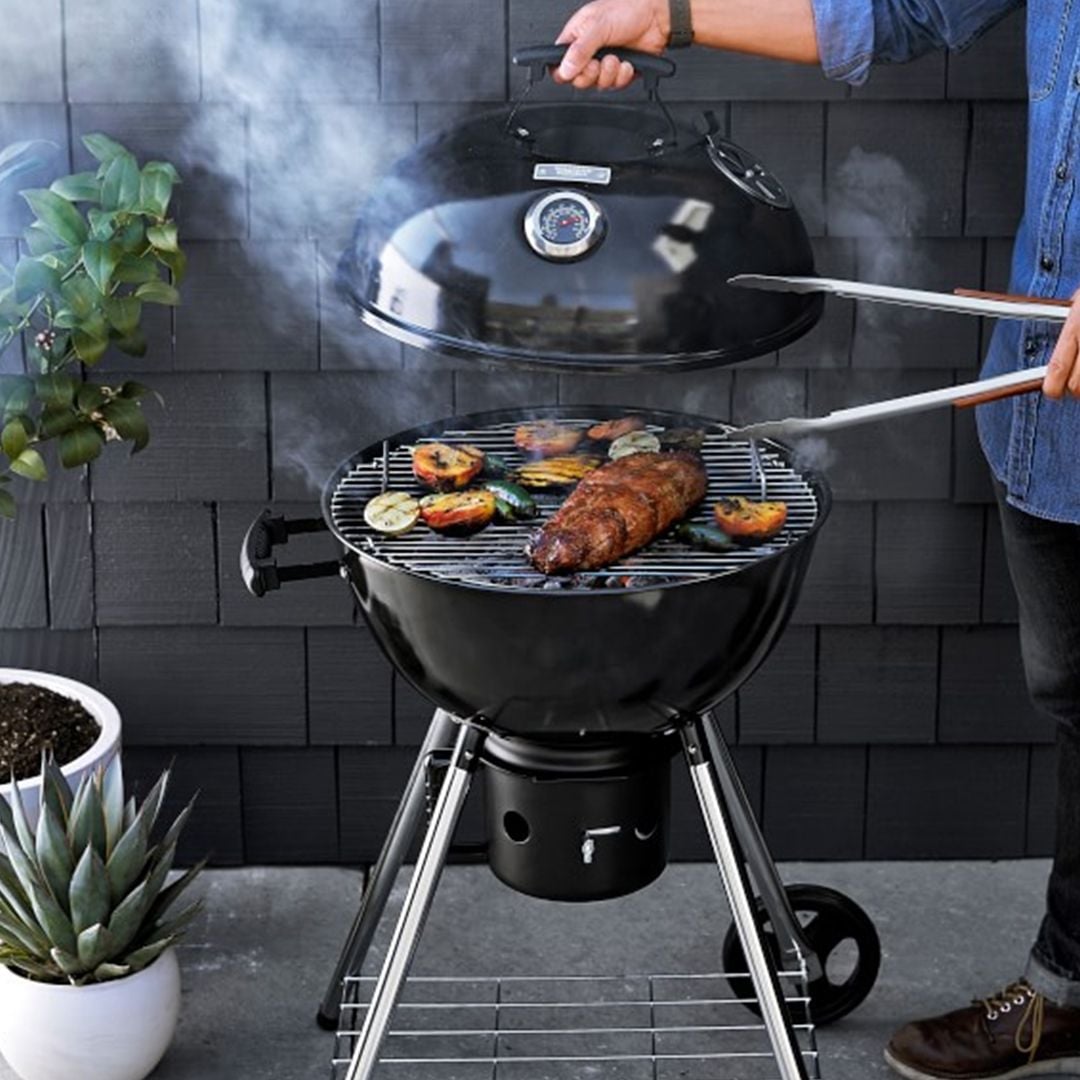 سعة كبيرة للشواء مع مقبض مقاوم للحرارة !! يتميز بنظام تهوية، مما يمنحك التحكم المطلق في درجة الحرارة وتدفق الهواء مزود بشبك سفلي لوضع أغراض الشواء و الصواني وغيرها يحتوي على عجلات لضمان تنقله من مكان الى آخر بسهوله تتميز الشواية بثلاثة أقفال للأغطية يمكن الشوي والغطاء موجود او بدونه بسهوله يمكن استخدام الرف السفلي للتخزين يمنحك مقياس الحرارة مع الفتحات العلوية والسفلية التحكم الكامل في الحرارة والدخان مناسبة للرحلات العائلية و للشرفات الصغيرة والطوابق والباحات يمكن شواء وجبة كاملة لمجموعة من أربعة أفراد أو أكثر إذا كانت لديك مساحة محدودة ، فهذه هي الشواية المثالية لك بدلاً من تجميع الرماد المحترق في الجزء السفلي من الشواية ، يتوفر مكان اسفل الشواية لجمع الرماد بمقبض سهل الإمساك حتى يمكن التخلص من الرماد بسرعة وسهولة