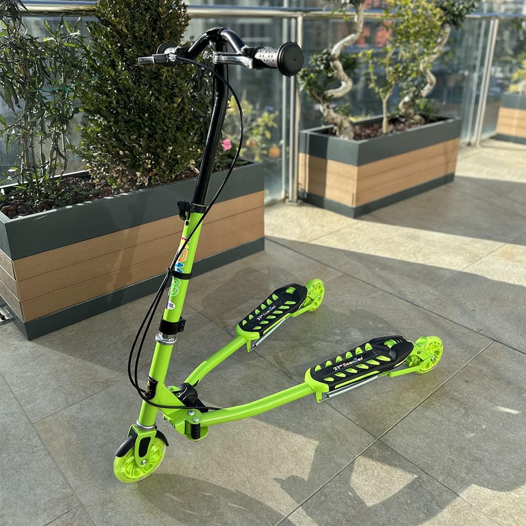 سكوتر ثلاثي بتصميم جديد مع بدالتين منفصلتين مثالي لتعليم طفلك على التوازن وتعزيز قوة الساق وتنسيق الجسم يتميز أنه قابل للطي، حتى يتم تخزينة بسهولة في المنزل أو في صندوق السيارة دون أي يأخذ حيز طول المقود قابل للتعديل، حتى يناسب جميع الأطفال الذين يتراوح طولهم بين 105 و155 سم يناسب الأطفال من عمر 4 - 12 سنة يتميز بعجلات LED مضيئة، تحتاج ل3 بطاريات دائرية صغيرة مصنوع من إطار ستيل شديد التحمل ودواسات غير قابلة للانزلاق حتى توفر للطفل الثبات أثناء الركوب يتحمل وزن يصل ل90 كغم