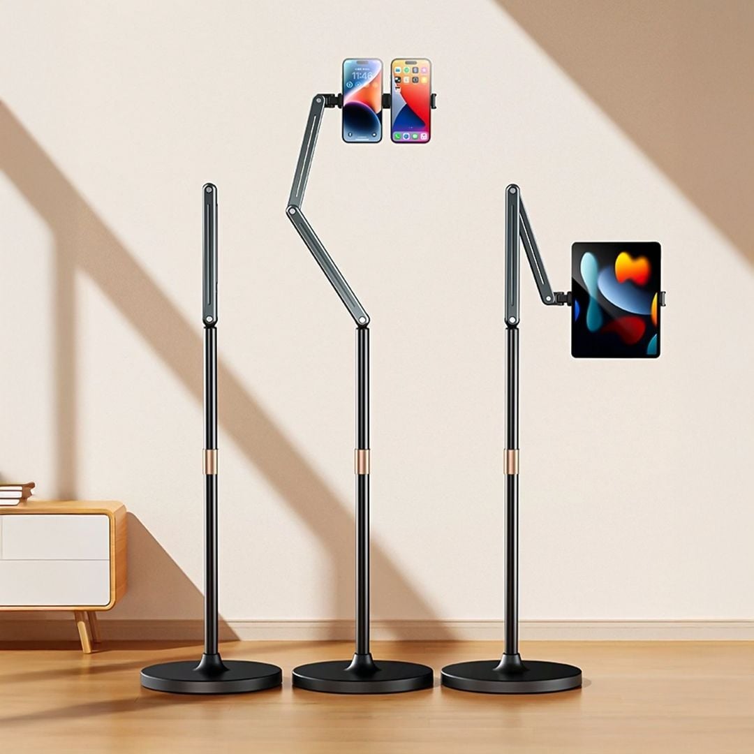 أطلق العنان لراحتك مع حامل الجوال الأرضي القابل للتعديل، لتجربة مشاهدة وتصوير بلا مجهود أينما كنت.