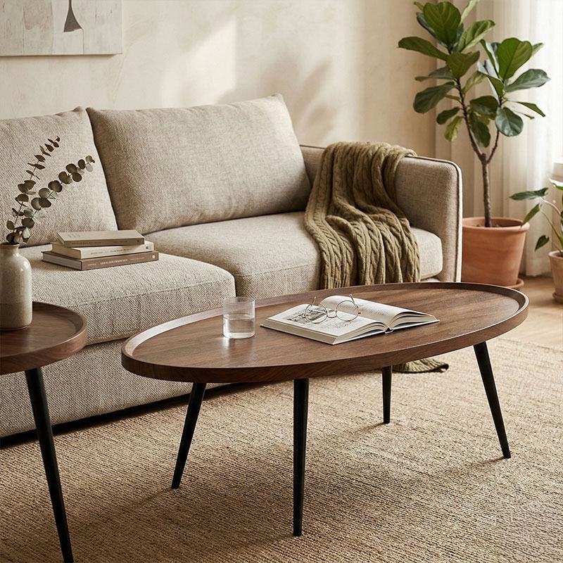 أضف لمسة دفء وأناقة لمساحتك مع طاولة وسط خشبية بتصميم بيضاوي انسيابي — قطعة تجمع بين البساطة العصرية والطابع الطبيعي لتكون مركز الجاذبية في غرفة المعيشة.