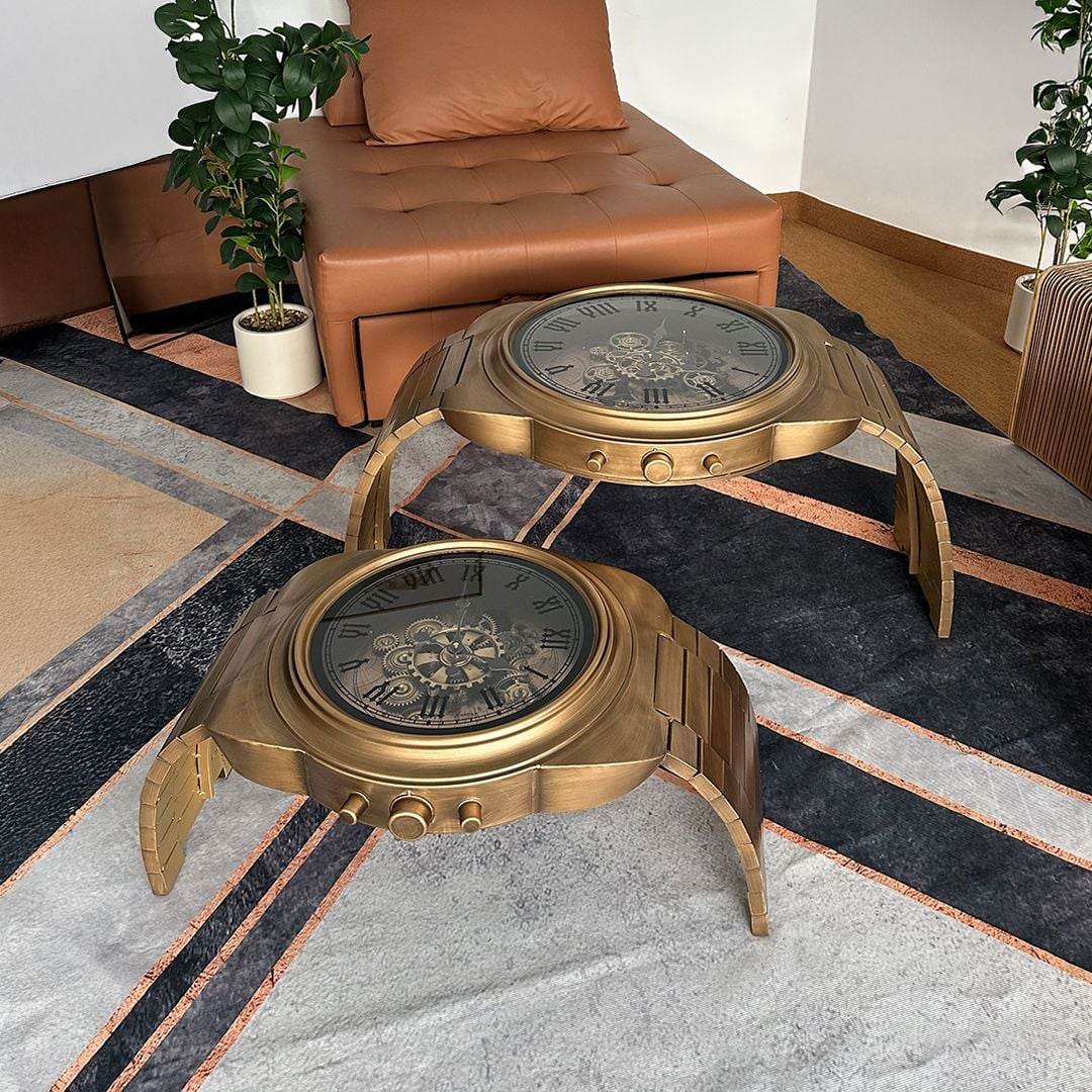 طقم طاولات بتصميم ساعة يد تروس الذهبية