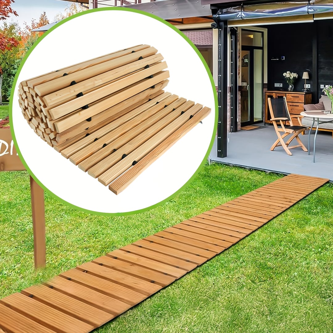 حل عملي وأنيق لتنظيم المسارات في الحدائق، الشواطئ أو المخيمات — ممر خشبي قابل للّف يمنحك ثباتًا وأناقة طبيعية، ويُطوى بسهولة للتخزين والحمل.