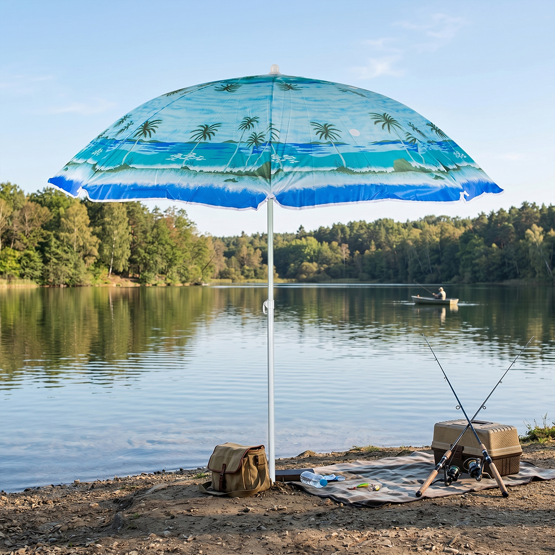 شمسية ومظلة الرحلات بألوان رائعة تناسب الصيف، يتم تركيبها على الطاولات او غرسها في الأرض عن طريق الوتد