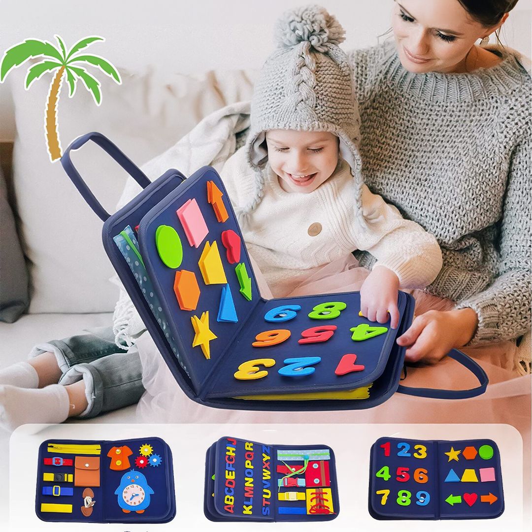 يحتوي الكتاب على جدول الأنشطة المزدحم اب 20 مهارة أساسية مختلفة: مثل ربط الأربطة والأزرار والسحابات والجيوب والأبازيم والساعات وما إلى ذلك