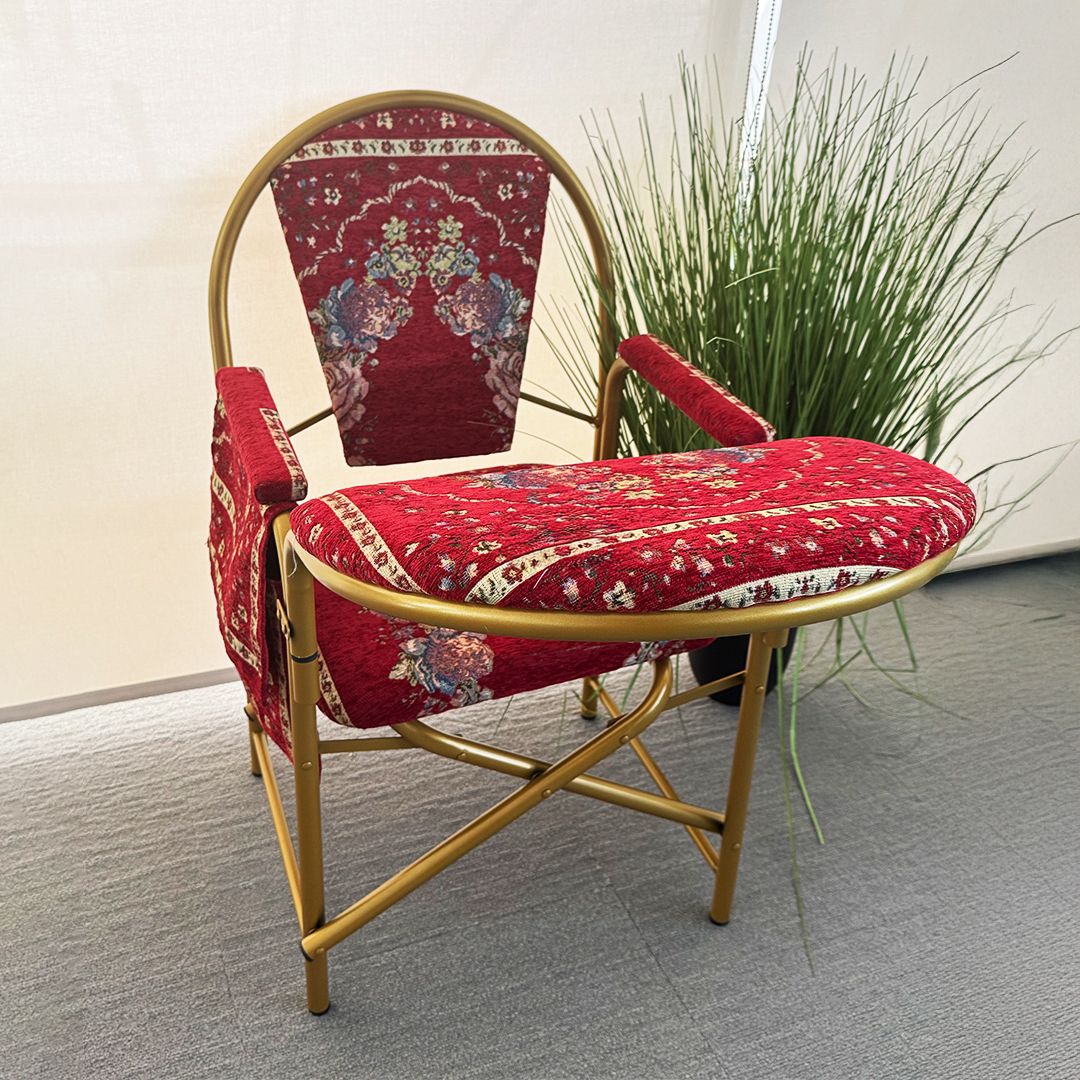 تصميم مريح وفريد: مزود بمسند ظهر مبطن ومسند للذراعين لراحة أثناء الجلوس لفترات طويلة. طاولة تلاوة مدمجة: تحتوي على لوح مخصص لحمل المصحف أو الكتب الدينية، قابل للفتح والإغلاق. قابل للطي: سهل التخزين ولا يأخذ حيزًا كبيرًا عند عدم الاستخدام. مناسب لكبار السن وطلاب العلم: يوفر دعماً كاملاً للجسم لتلاوة مريحة بدون إجهاد. خامات عالية الجودة: إطار معدني قوي ومتين مع قماش فاخر مزخرف بنقوش إسلامية. ثبات عالي: هيكل متوازن وآمن للاستخدام اليومي سواء في البيت أو المسجد. مقاس مثالي: يتناسب مع مختلف الأحجام ويوفر المساحة اللازمة للتلاوة أو القراءة.