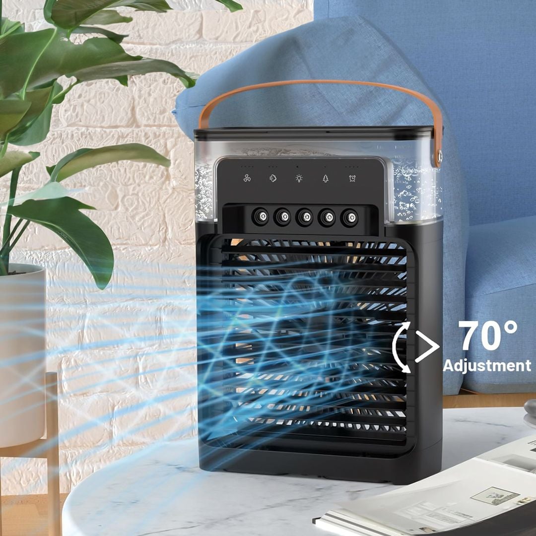 احصل على مكيف الهواء المحمول الآن واجعل راحتك في متناول يديك أينما ذهبت! بإضاءة LED بـ 7 ألوان و 3 سرعات للرياح