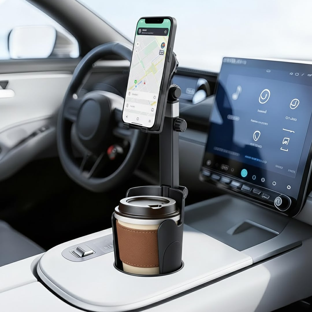 يُثبت مباشرة داخل حامل الأكواب في سيارتك، ليمنحك حلًا ذكيًا وأنيقًا دون أي لواصق مزعجة على الزجاج أو لوحة القيادة. لا فوضى، لا تشويه للديكور الداخلي — فقط تنظيم راقٍ يعكس ذوقك العملي.