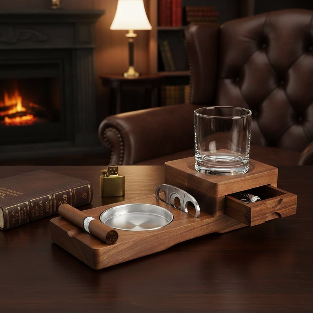 ارتقِ بتجربة ضيافتك إلى مستوى مختلف مع منصة تقديم خشبية أنيقة مصممة خصيصًا لعشّاق الذوق الرفيع — قطعة تجمع بين العملية والفخامة لتمنح كوبك ولمسة السيجار حضورًا استثنائيًا في كل جلسة.