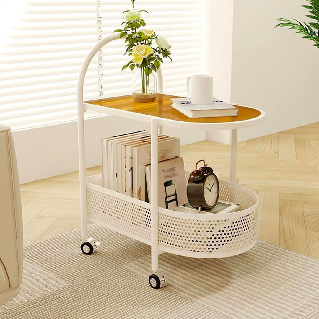 مزود بعجلات دوّارة مرنة لتسهيل التنقل بين الغرف أثناء التقديم، مع سلة سفلية واسعة للتخزين الإضافي.